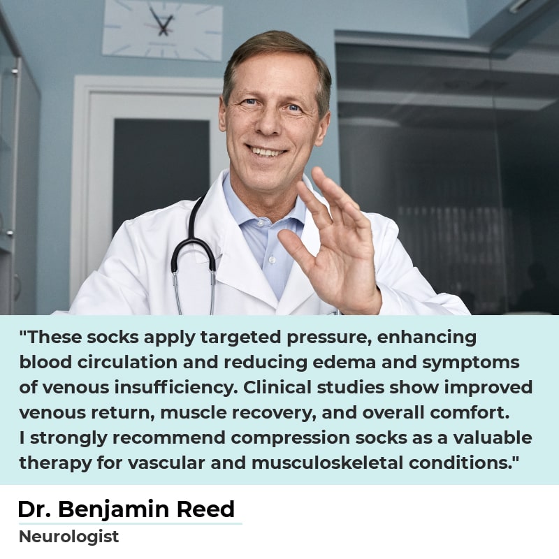Most neurologists agree that Compression Socks are a super effective, quick way to ease leg pain anytime, anywhere.