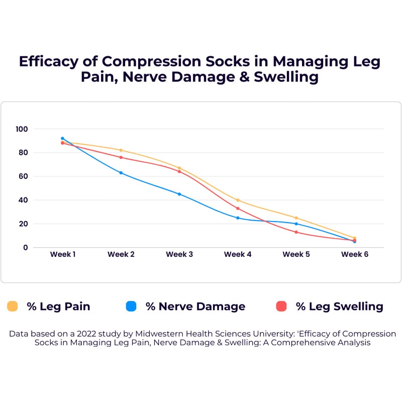 In a study by Midwestern Health Sciences University (October-November 2022), Compression Socks were evaluated. Among 35 participants over 6 weeks: