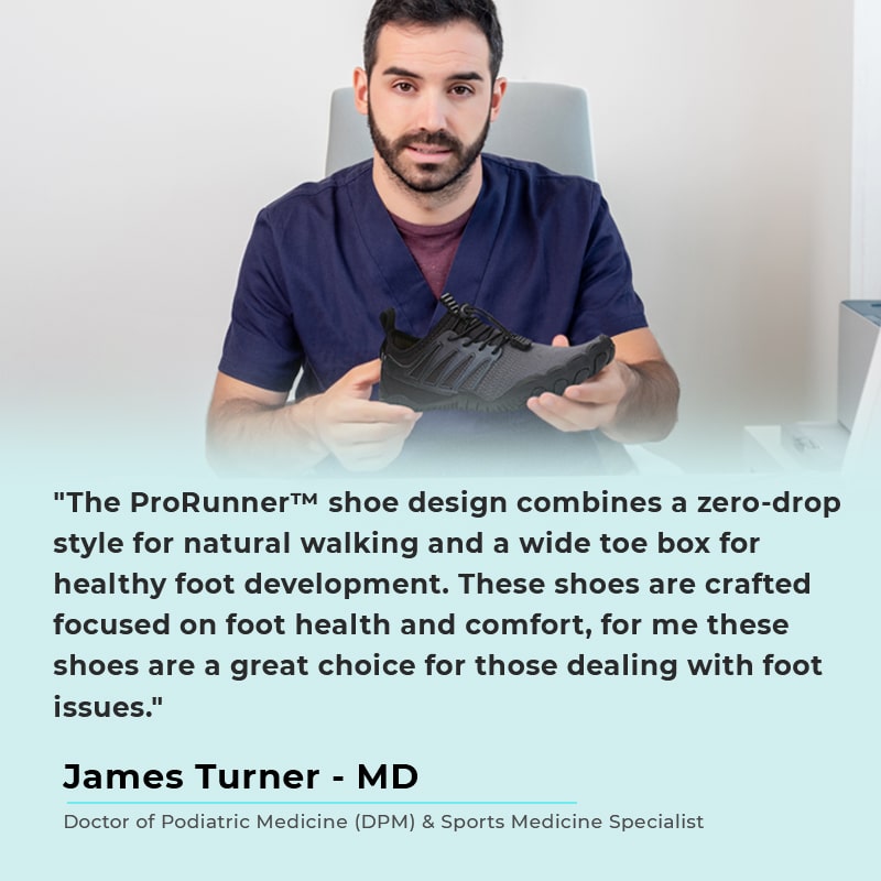 ProRunner™ shoes are designed to mimic the natural shape and mechanics of your feet. They offer a wide toe box for natural toe spread and a zero-drop sole for proper posture. This design encourages a more natural gait, reducing strain and promoting foot strength.