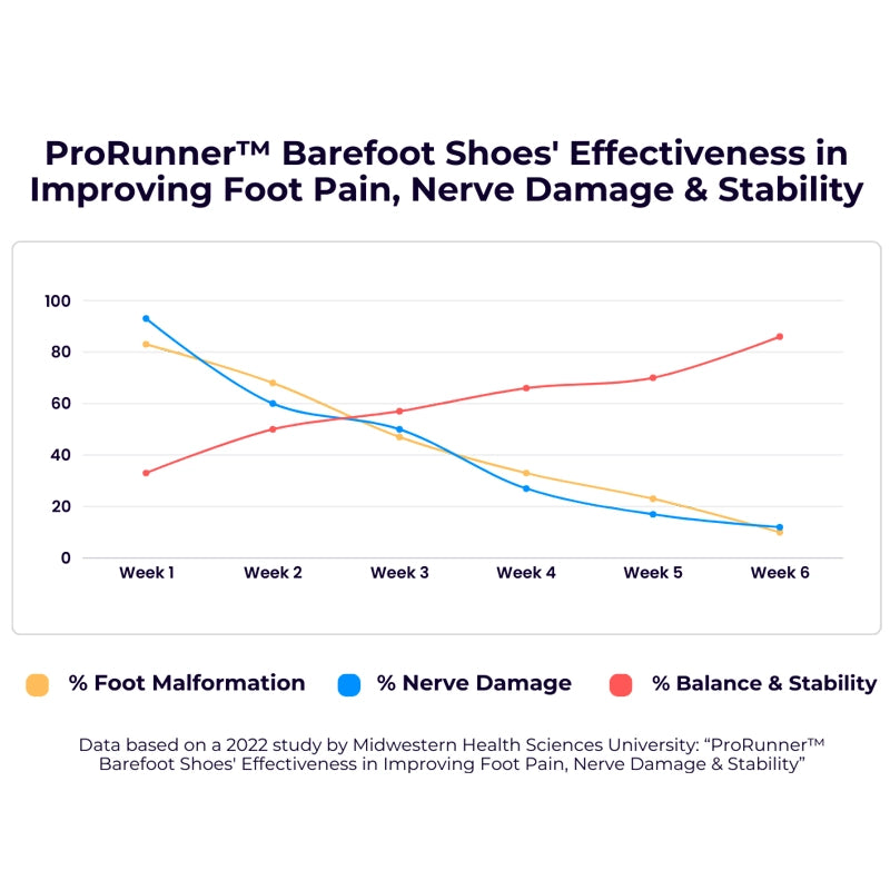 The findings from a 2022 scientific study conducted by Midwestern Health Sciences University attested the effectiveness of ProRunner™. After just 6 weeks of using them, participants experienced significant improvements in their foot health: